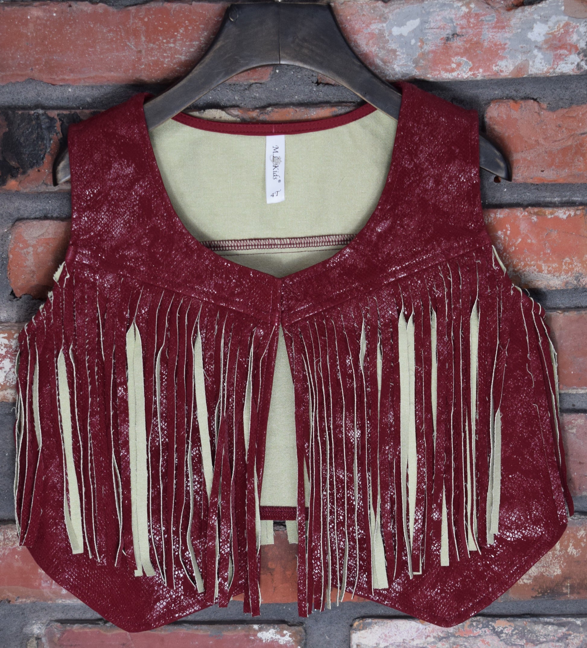 Upgrade your wardrobe with a pleather fringe cropped vest. Crafted with attention to detail, this vest adds a touch of edgy style to any outfit. The faux leather material and fringed design provide both durability and a trendy look. Elevate your fashion game and stand out with this must-have piece.
