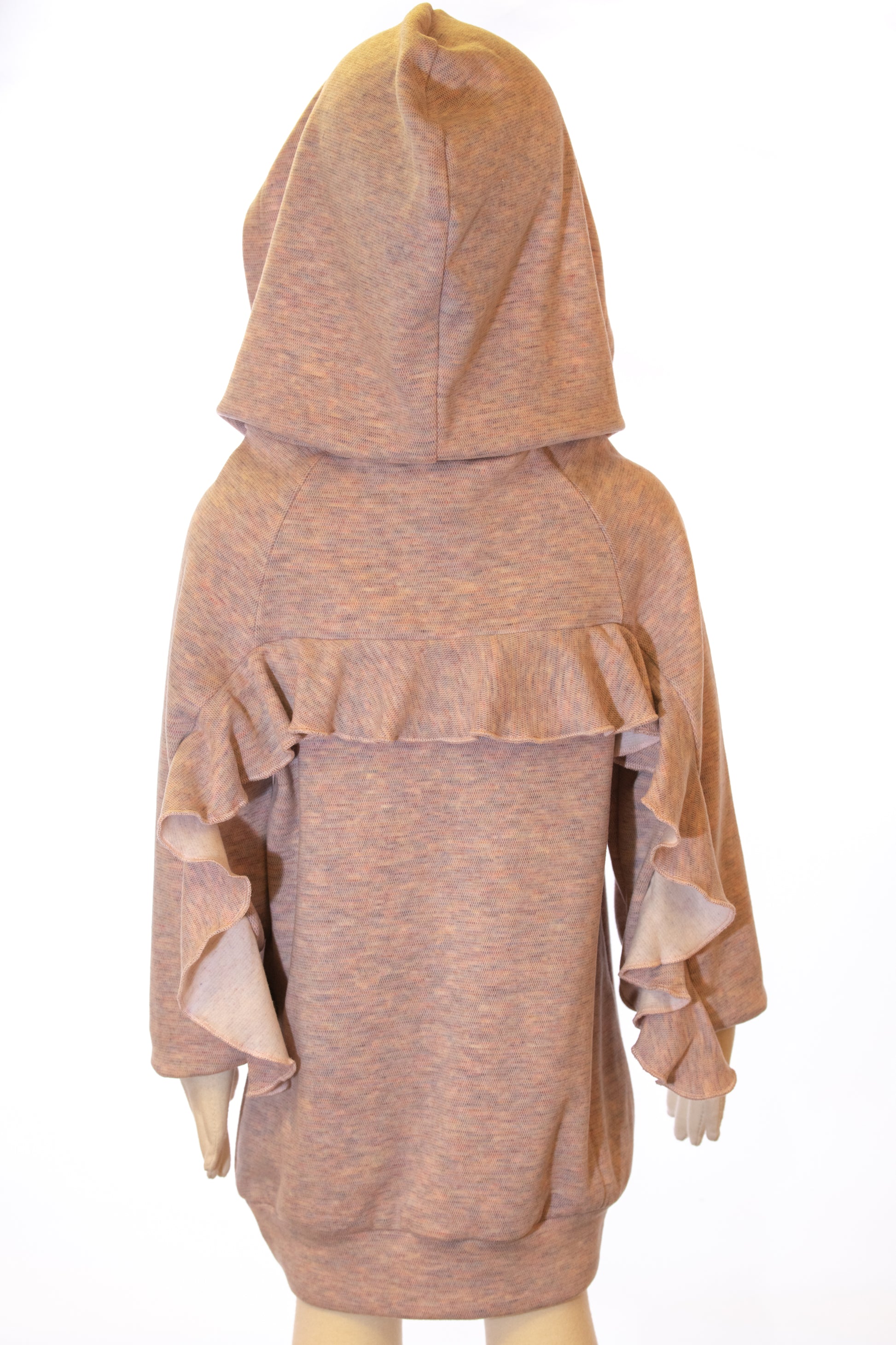 This hooded sweatshirt for children provides both style and warmth. This adorable sweatshirt features a ruffle detail and soft, cozy fabric in vibrant colors. Keep your little one stylish and comfortable all season long.