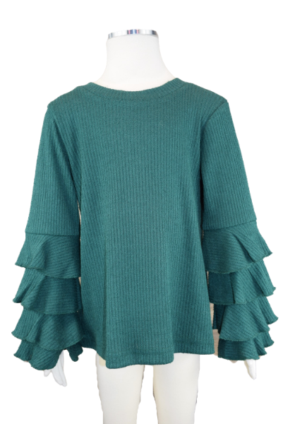 This children's shirt is designed with playful ruffles and long sleeves, this shirt adds a touch of sweetness to any little one's wardrobe. Elevate their style while keeping them comfortable.