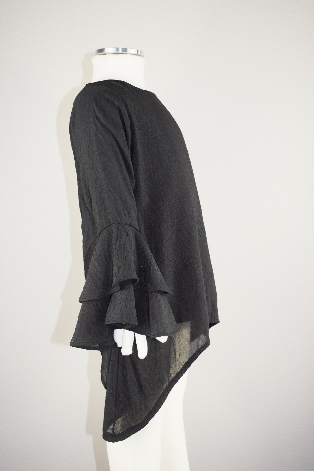 Expertly crafted with long sleeves and an asymmetrical design, this blouse is both stylish and versatile for any occasion. The ruffles add a playful touch while the durable material ensures long-lasting wear. A must-have addition to your child's wardrobe.