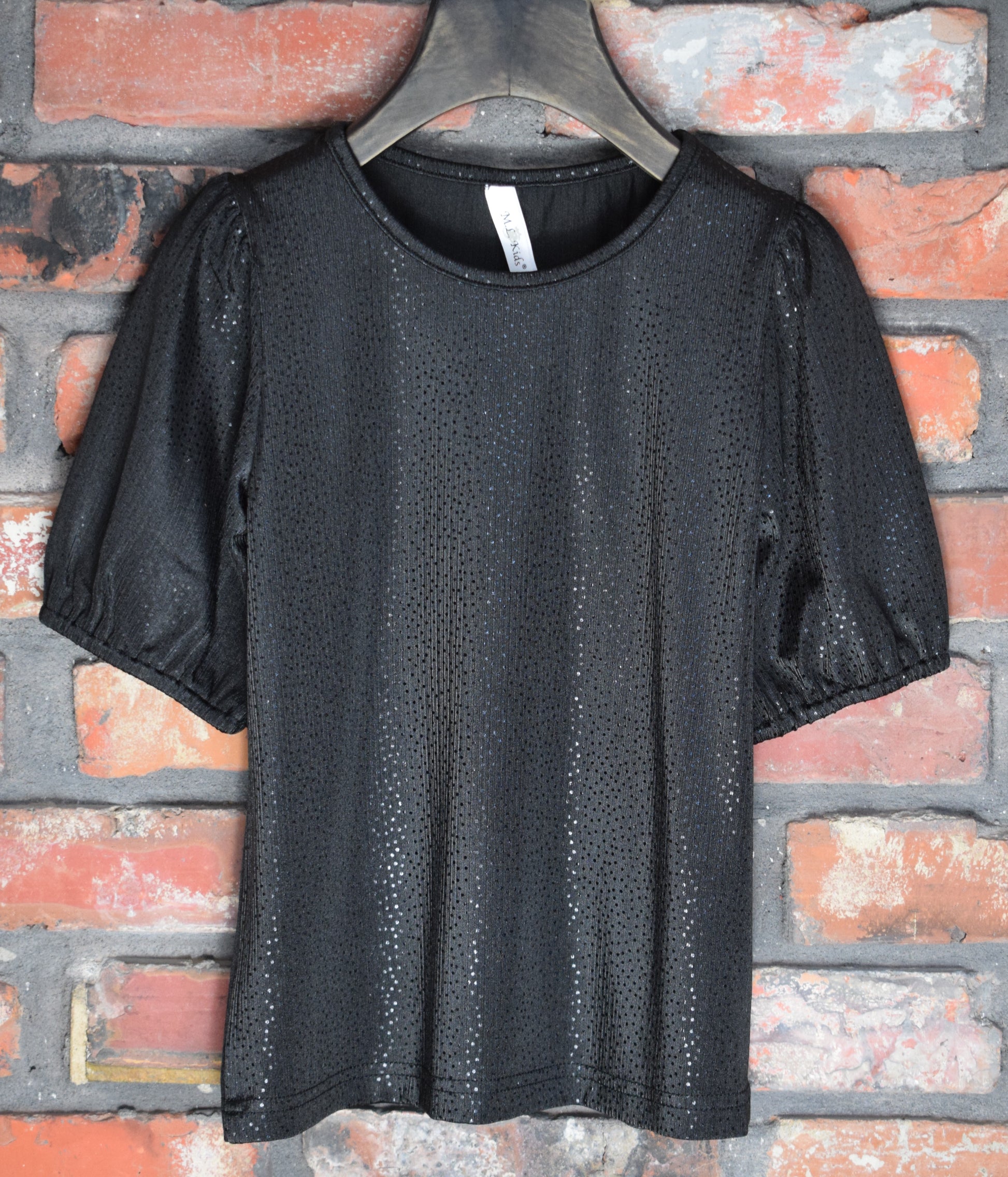 The top features a fashionable foil polka dot design and comfortable 1/2 length sleeves. Perfect for adding a touch of style to any outfit.
