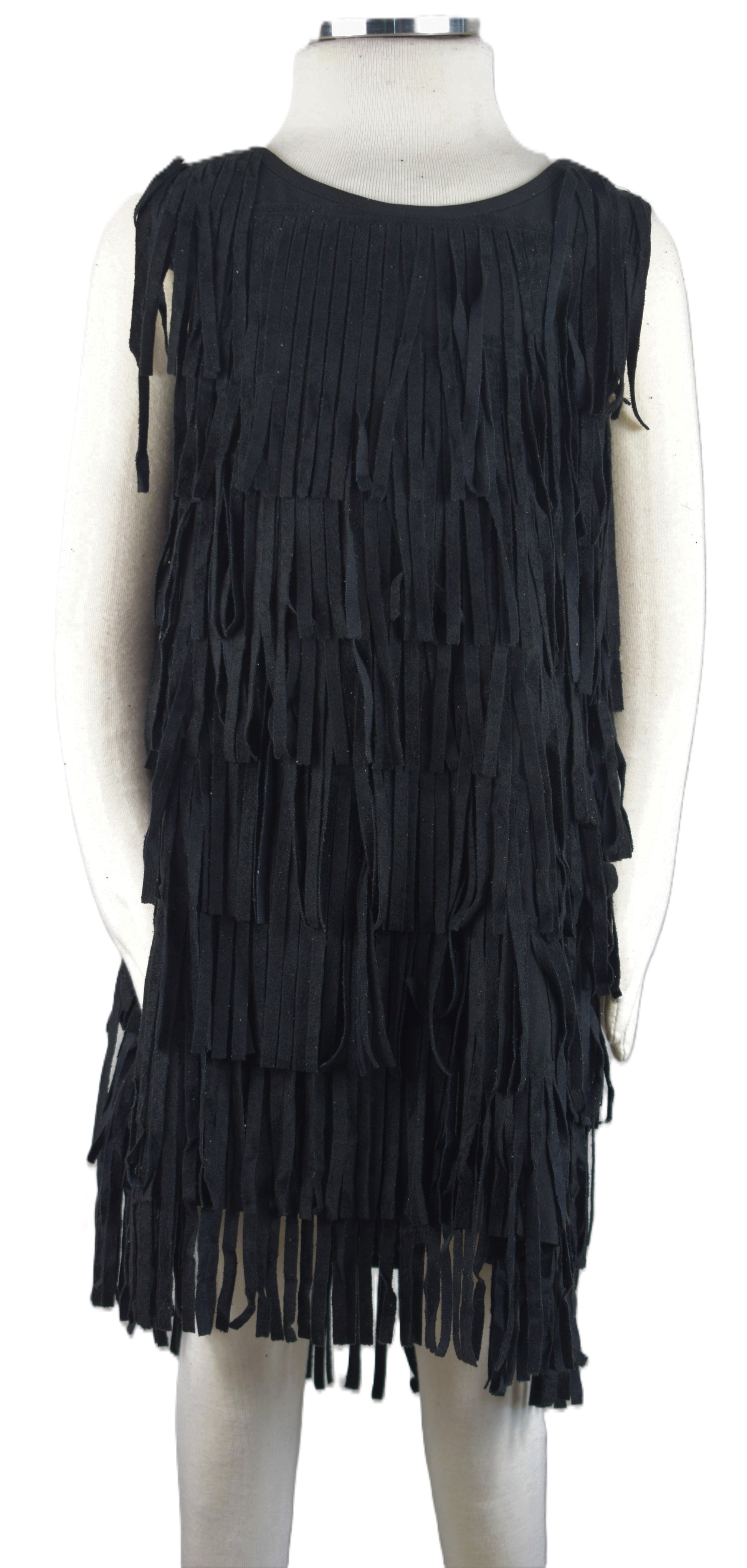 Get ready to make a fashion statement with this fun, faux leather fringed dress for stylish children. This original dress is perfect for adding some personality and style to any outfit. Your child's western look will shine with this unique piece.