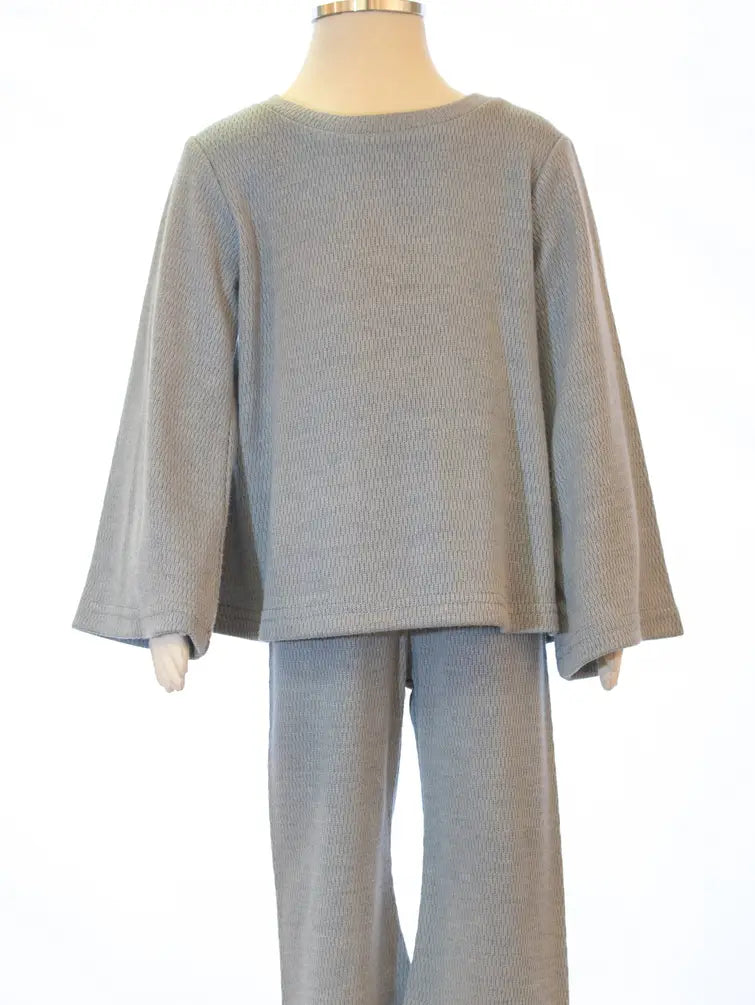Stay warm and stylish in the cooler months with this super soft and cozy two-piece set, perfect for children's clothing. It features flare sleeves and legs for a trendy look.