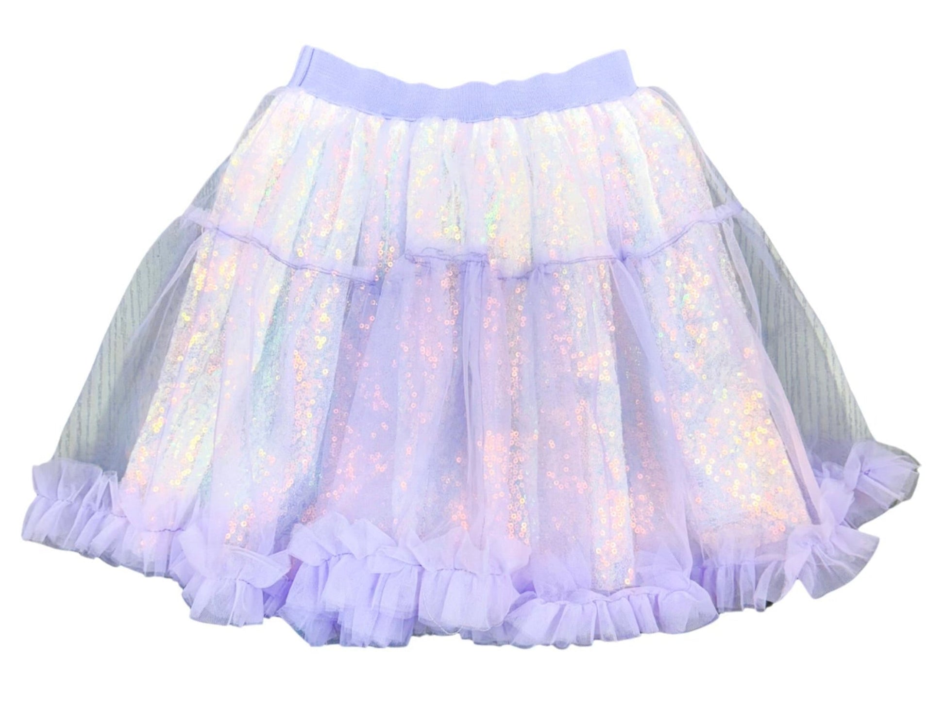 This skort features a stylish tulle overlay and sparkling sequins, making it perfect for any fashionable child. Soft and comfortable, it adds a touch of glam to any outfit.