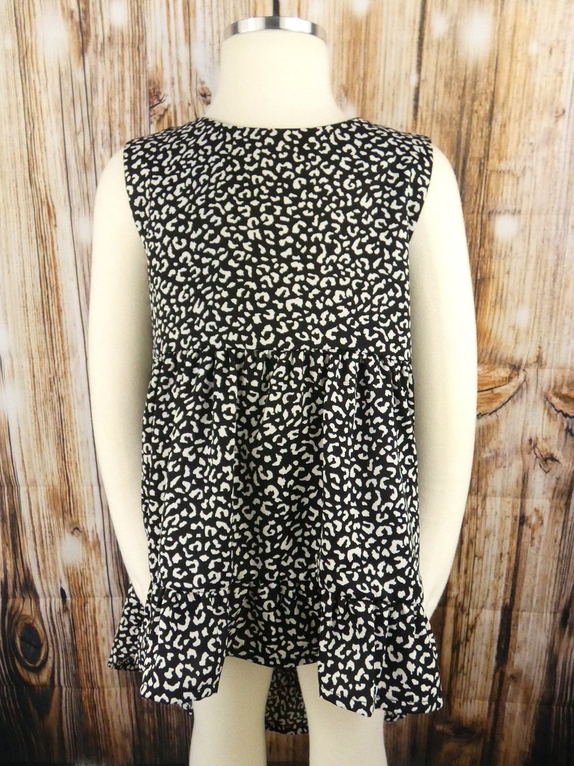Upgrade your child's wardrobe with our ST0103 leopard print hi-lo tunic. This trendy and versatile tunic is sleeveless, making it a great choice for any event. Perfect for your fashion-forward little one.