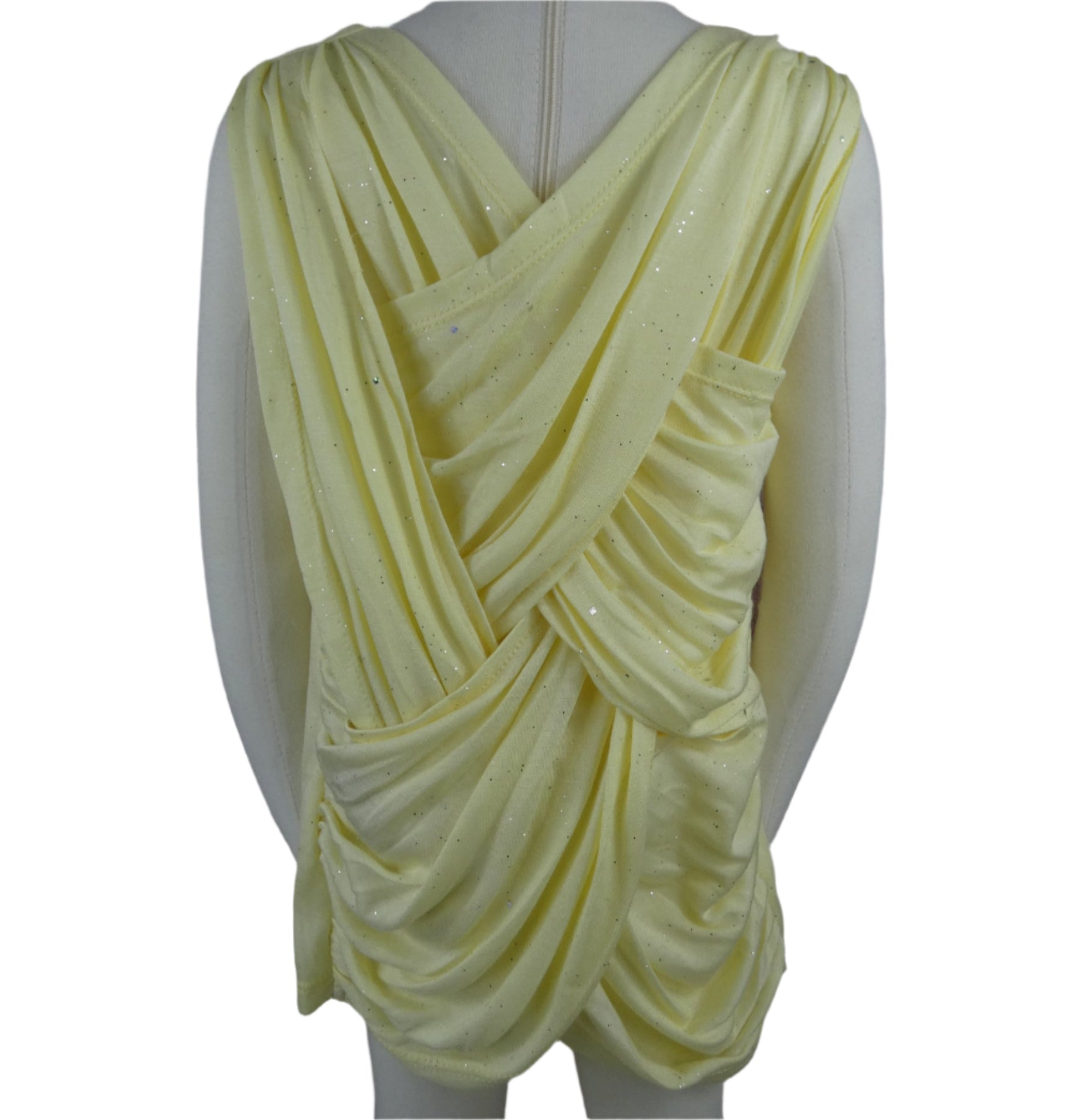 Upgrade your child's wardrobe with our ST0108 glitter top. Featuring a trendy crisscross back design, this top is both stylish and comfortable. Made with high-quality fabric and attention to detail, it's the perfect addition to any fashion-forward kid's closet.