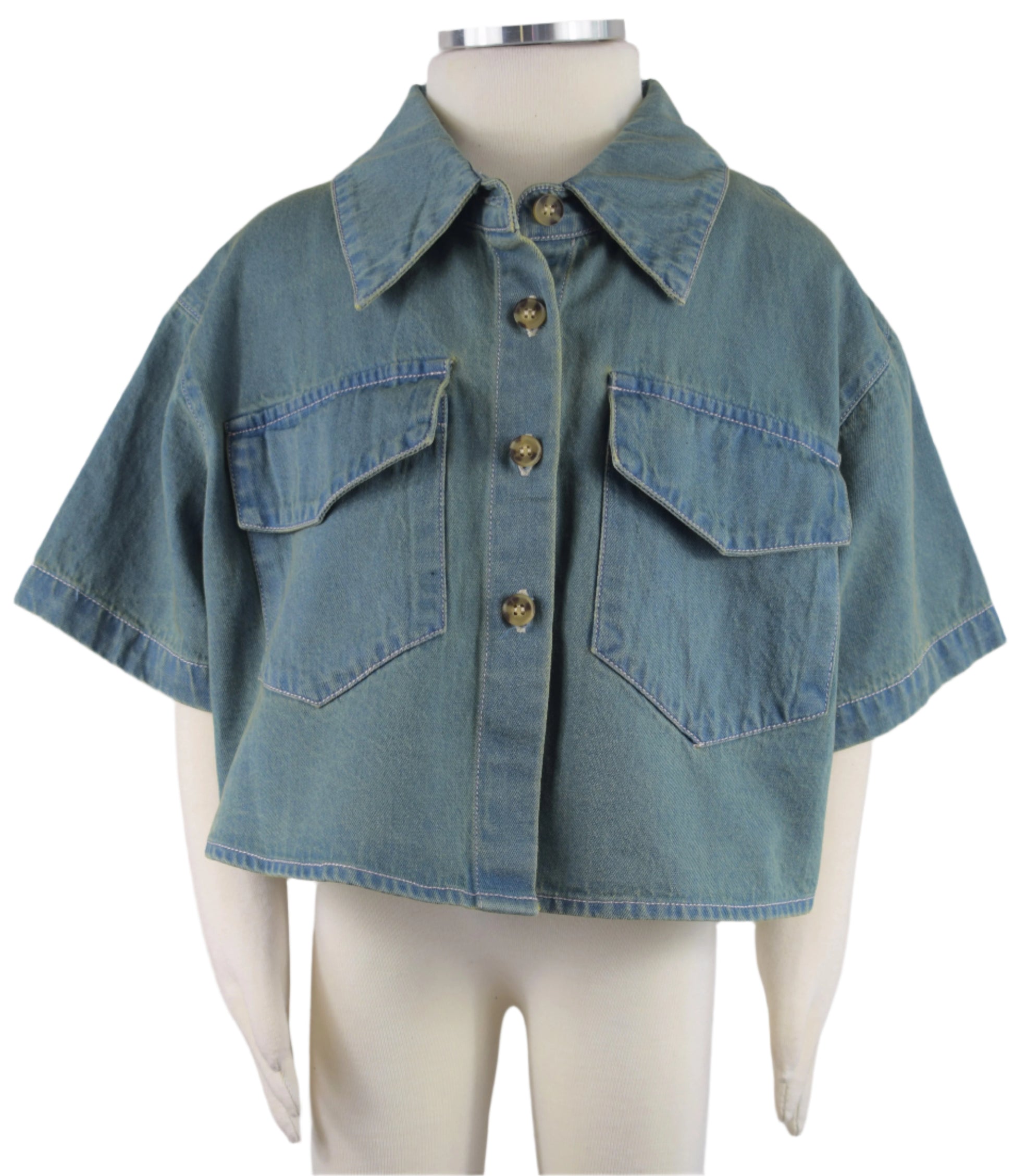 Upgrade your child's wardrobe with this cropped denim jacket / top. With its sleek design and two pockets, this stylish jacket is perfect for any young fashionista. Classic and versatile, it's a must-have for any fashionable kid.