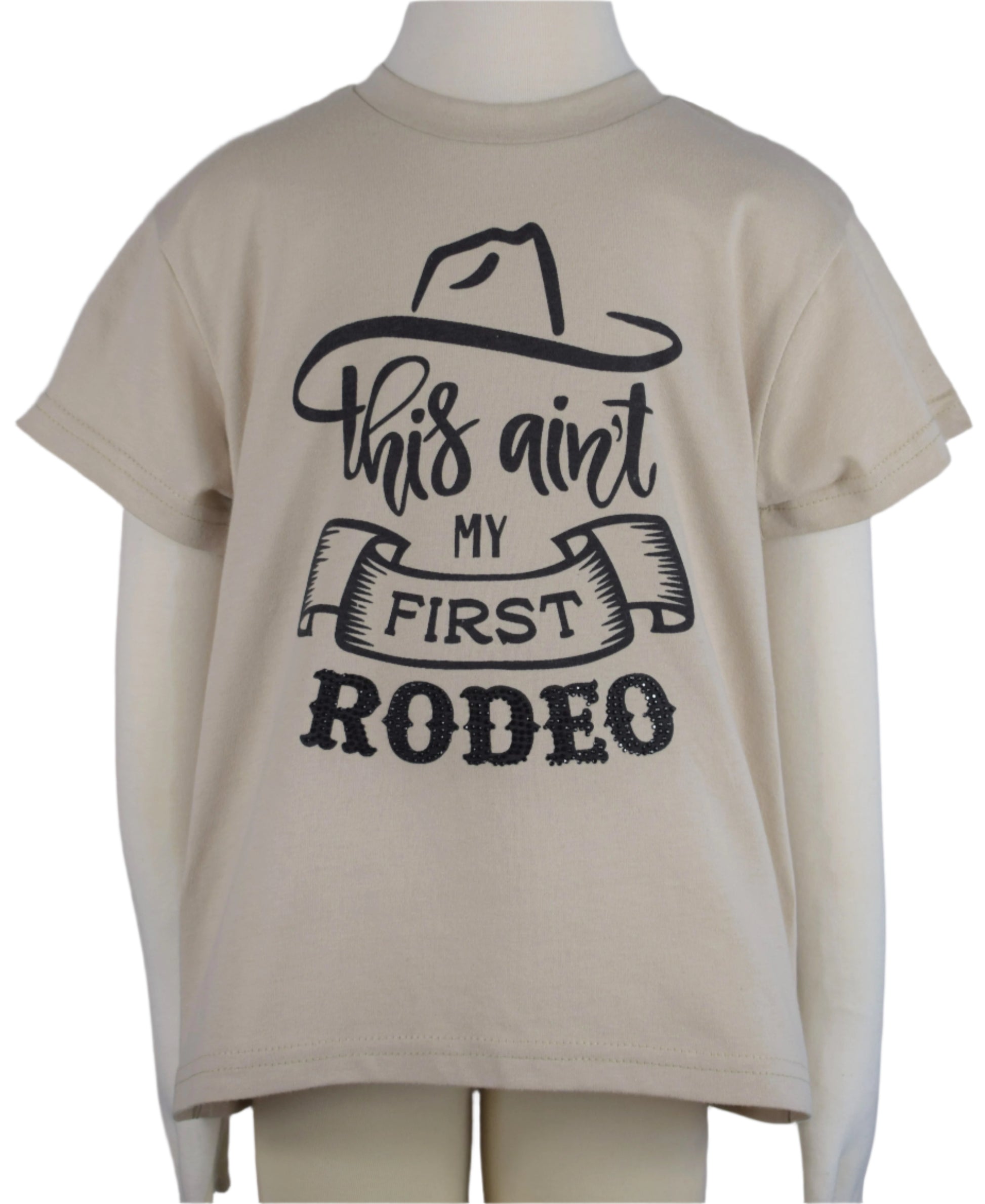 Get your little one ready to wrangle with this t-shirt. Featuring bold black lettering and a playful phrase, "This ain't my first rodeo," this charming shirt is perfect for stylish young cowboys and cowgirls. Made with high-quality materials, it's a must-have in your child's wardrobe!