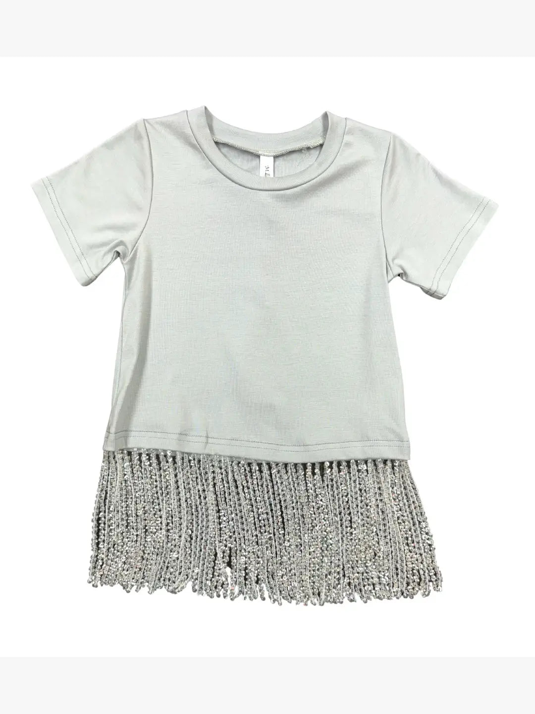 Dress up your little one with our this Basic T-shirt! Made with high-quality fabric and adorned with delicate beaded trim, it combines comfort and style perfectly. The perfect addition to any child's wardrobe.