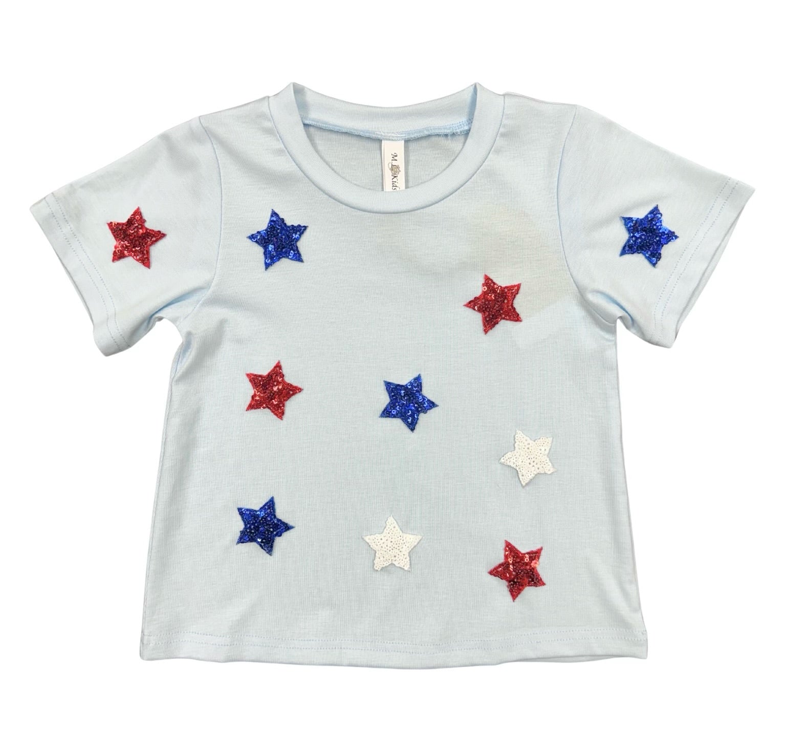 This short sleeve t-shirt features eye-catching 3D sequin stars that will make your child stand out. Made with comfortable material, it's perfect for everyday wear or special occasions. Your child will love the unique style and you'll love the quality and durability.